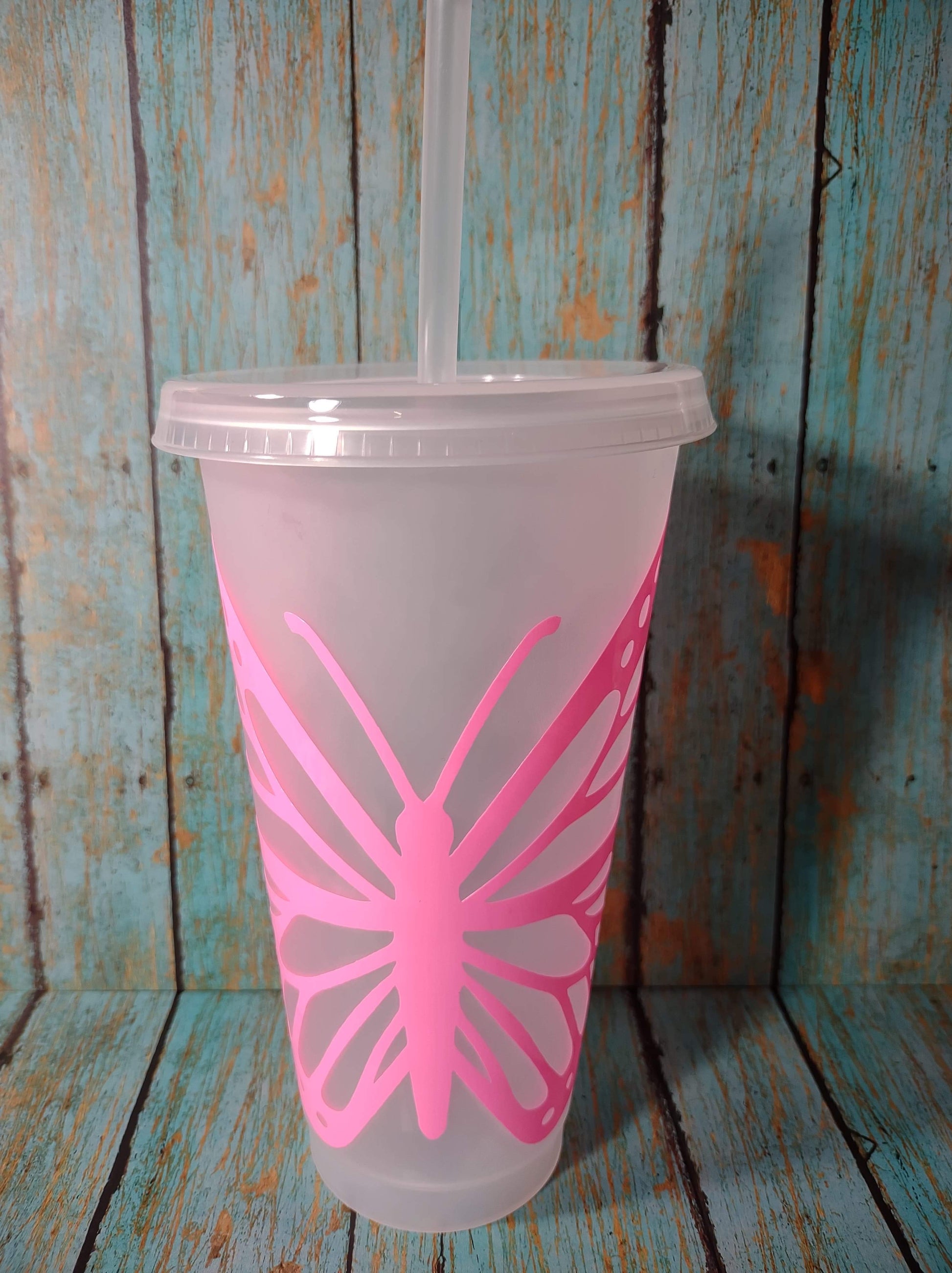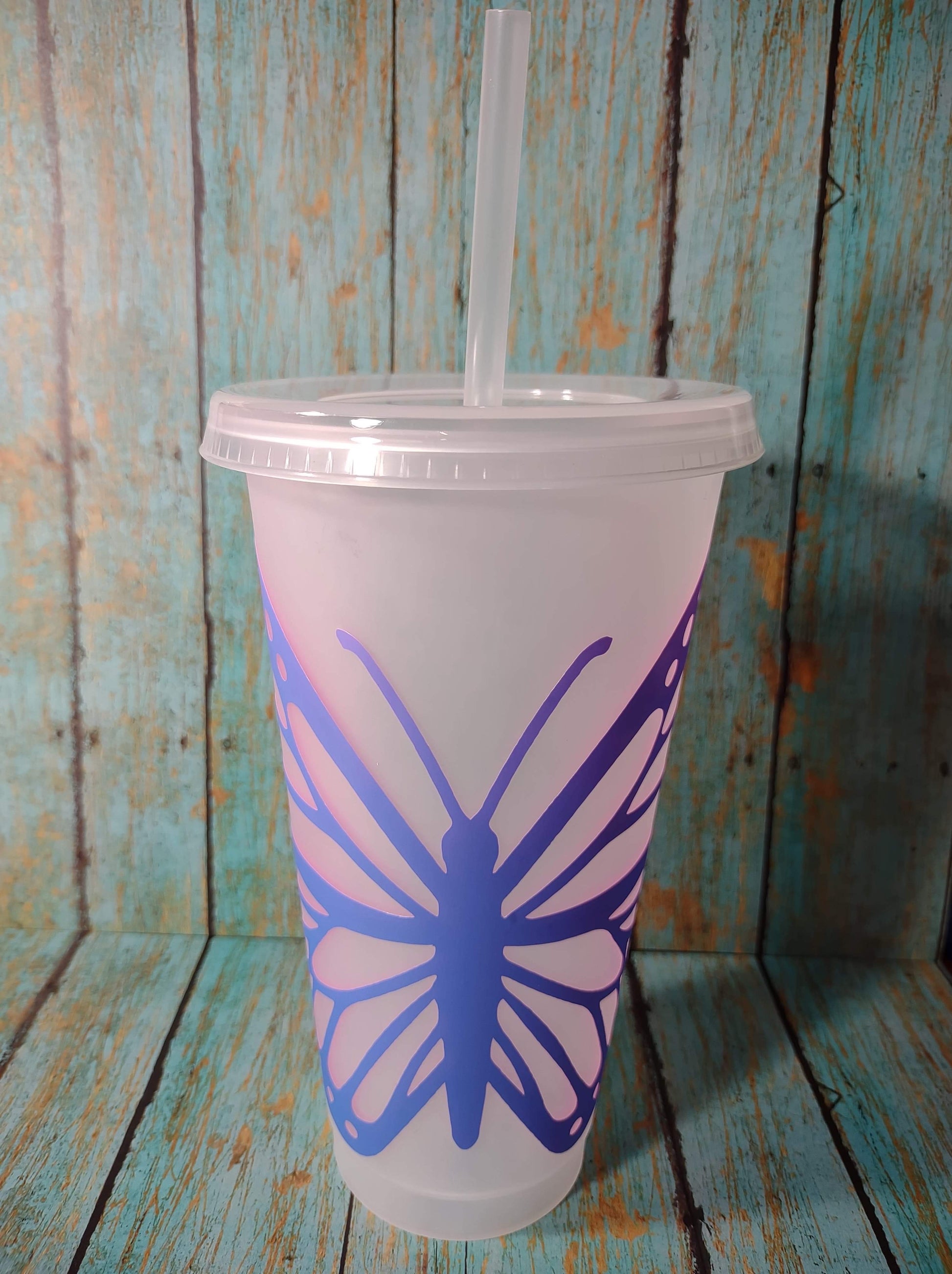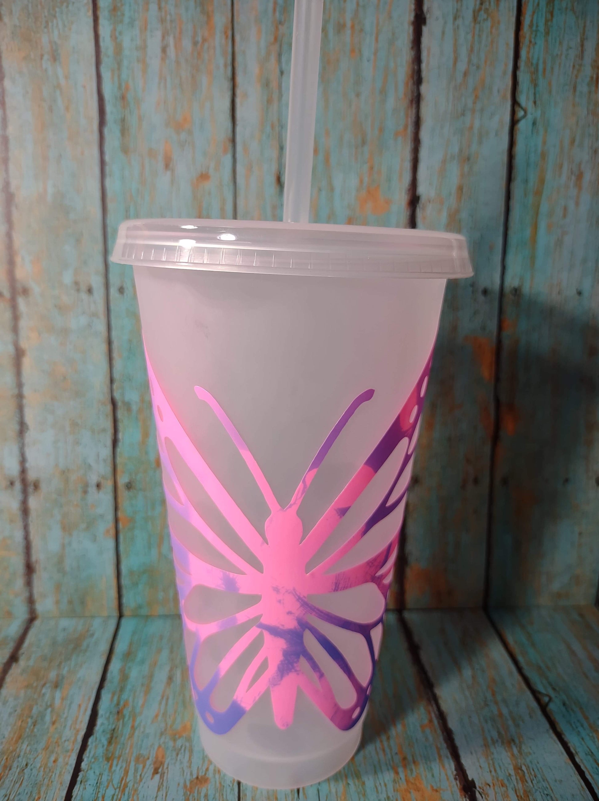 24 oz Cup with Lid and Straw…..Cold color changing vinyl