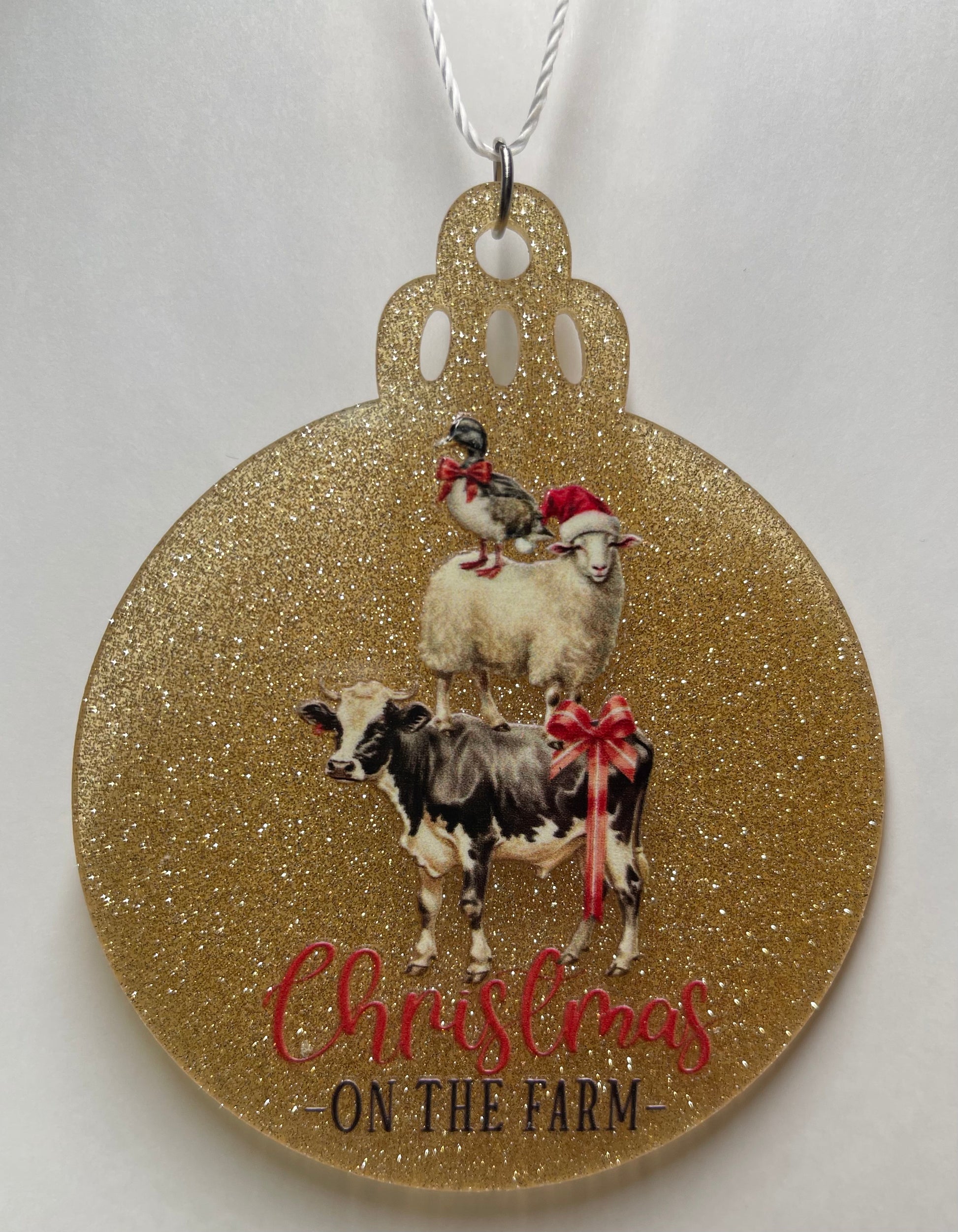 Durable acrylic material, the CHRISTMAS ON THE FARM ORNAMENT is a festive addition to any holiday decor. Its vibrant color and high-quality construction make it a charming and long-lasting ornament for your Christmas tree or as a fun decoration around the house.