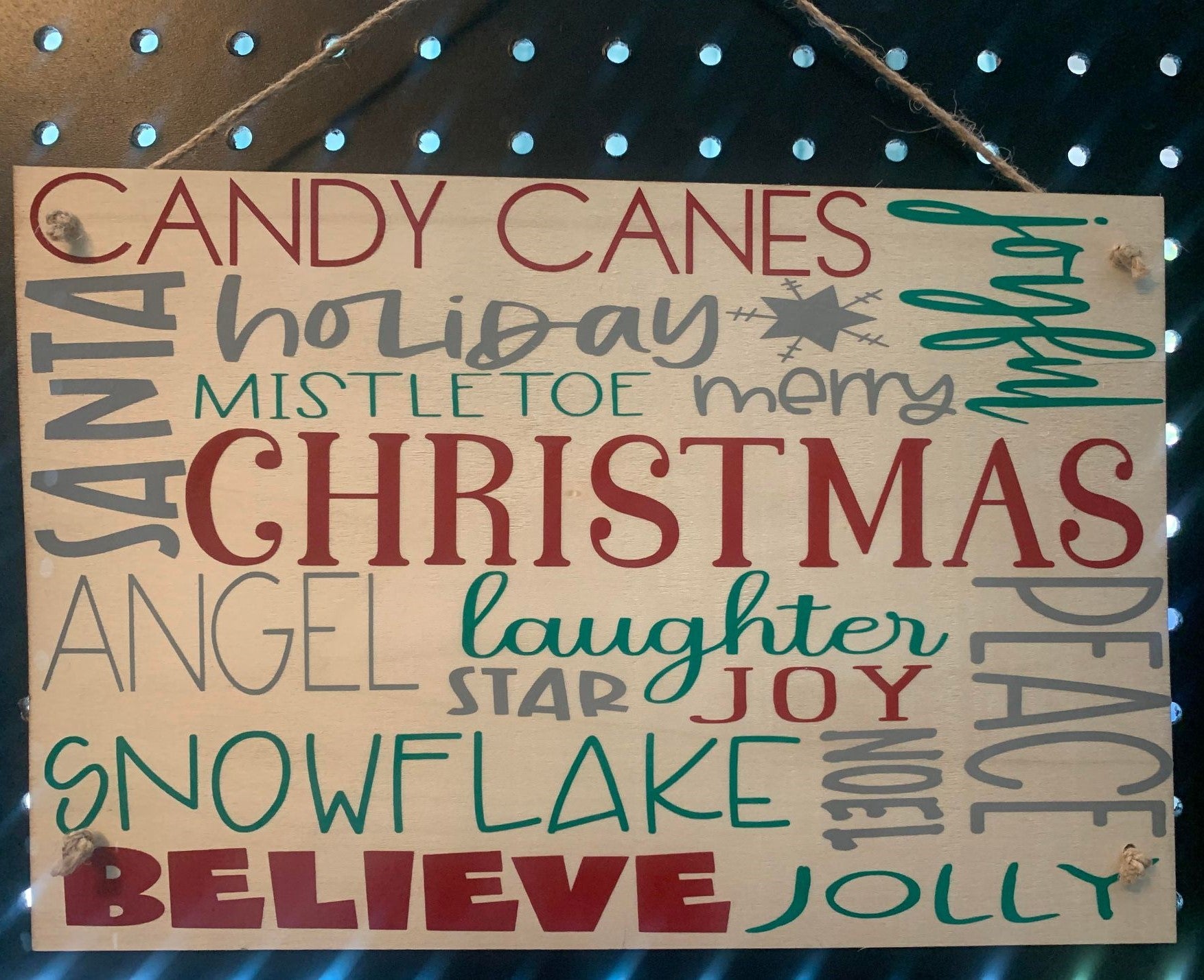 12x8 This handcrafted wooden Christmas sign is made with lightweight wood, perfect for bringing festive cheer into any home. The intricate details are carved with precision, creating an eye-catching decoration for the holidays.