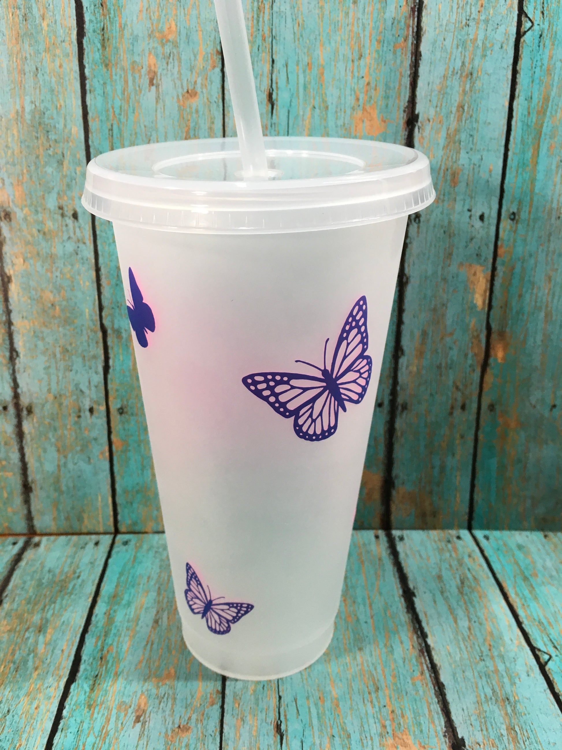 24 oz Cup with Lid and Straw…..Cold color changing vinyl