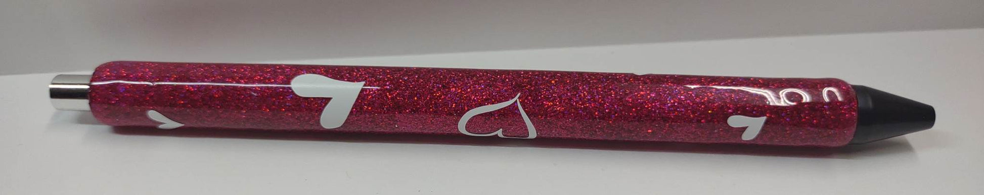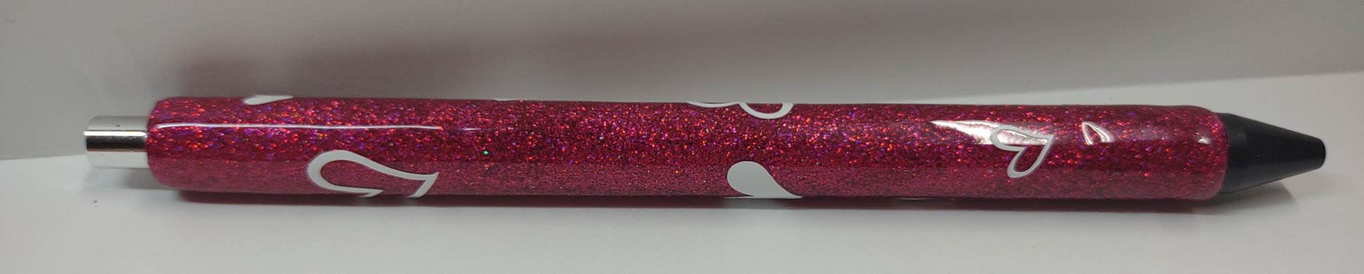 DARK PINK GLITTER PEN WITH WHITE HEARTS