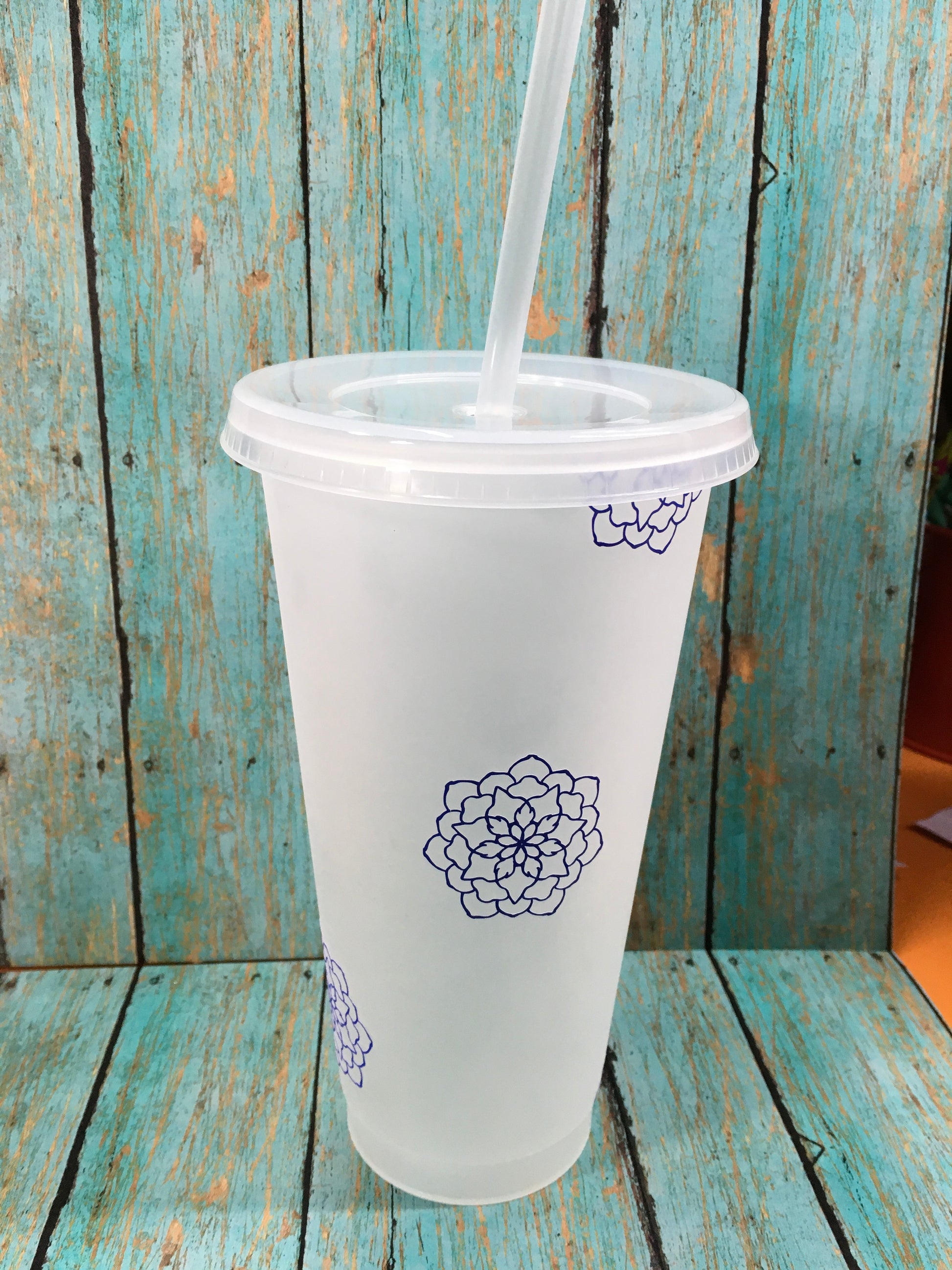 24 oz Cup with Lid and Straw…..Cold color changing vinyl
