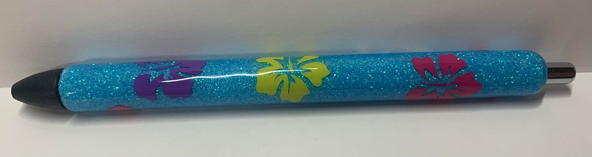 HIBISCUS GLITTER PEN - DIFFERNET COLORS AVAILABLE AND FLOWER COLOR AND PATTERN WILL VARY