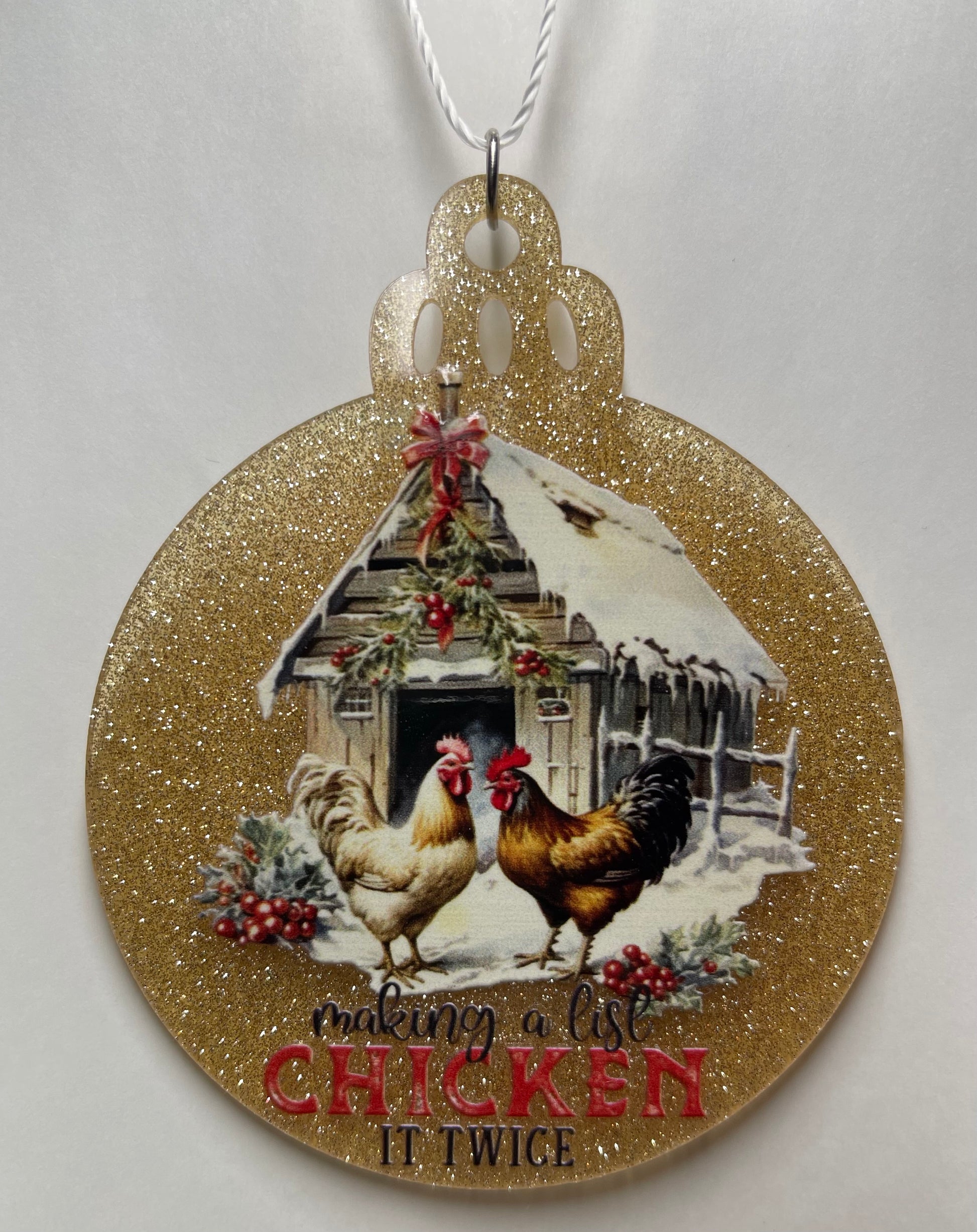 Durable acrylic material, the MAKING A LIST CHICKEN IT TWICE ORNAMENT is a festive addition to any holiday decor. Its vibrant color and high-quality construction make it a charming and long-lasting ornament for your Christmas tree or as a fun decoration around the house.