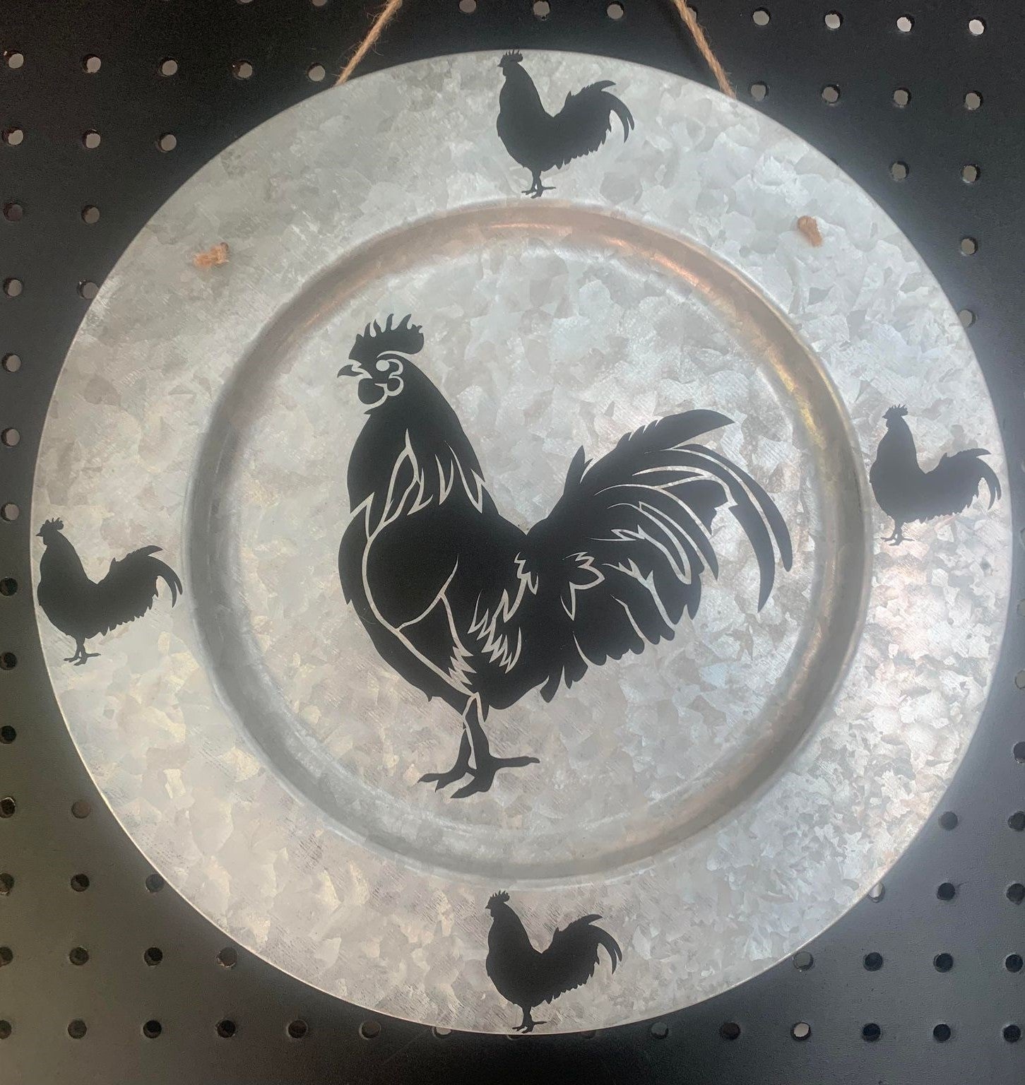 METAL CHARGER WITH CENTER ROOSTER AND SMALL ROOSTERS