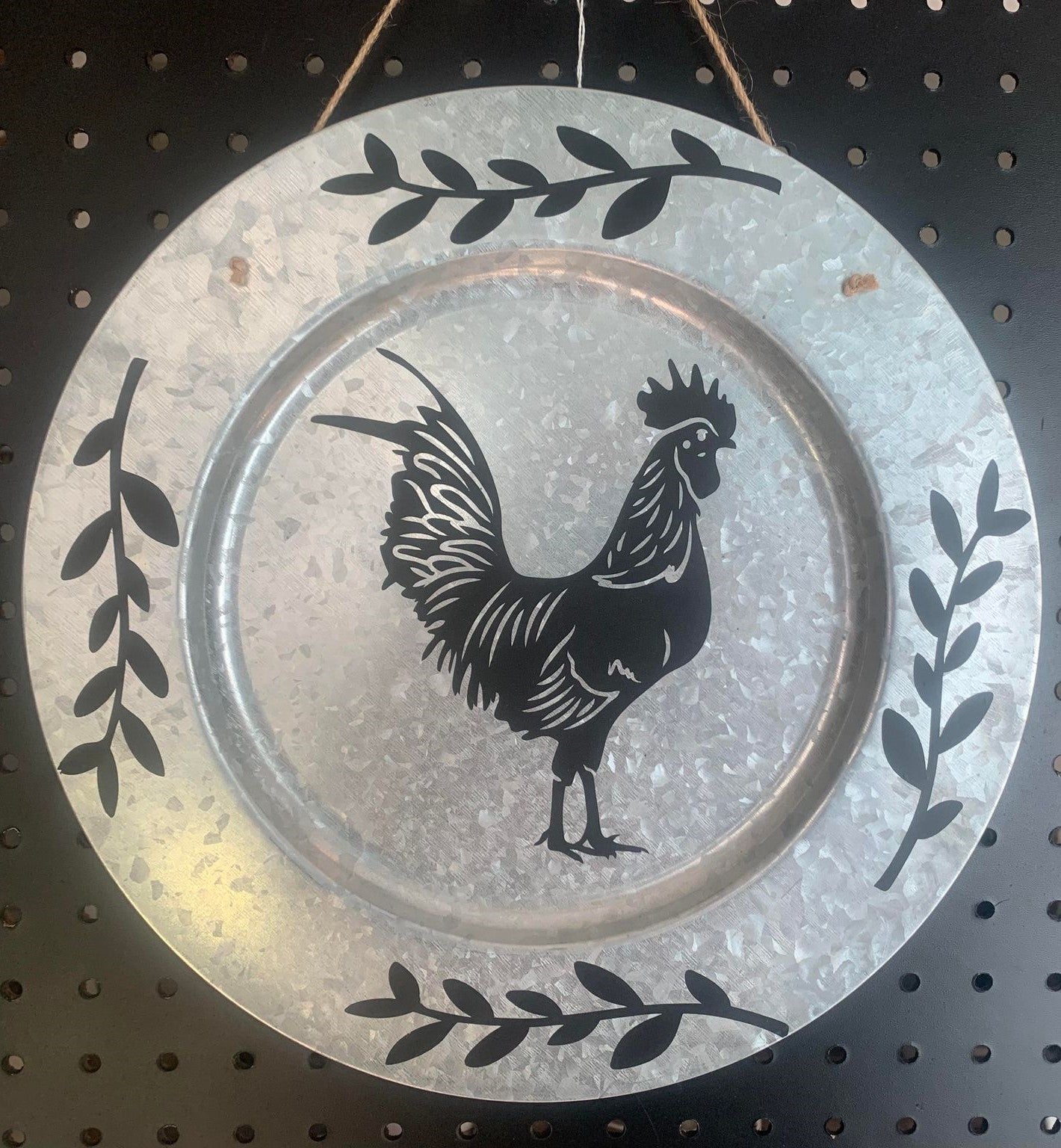 This high-quality metal charger features a beautiful rooster and vines design. This charger is perfect for adding a classic touch to any home. The sturdy metal ensures your charger will be durable and last for years to come.