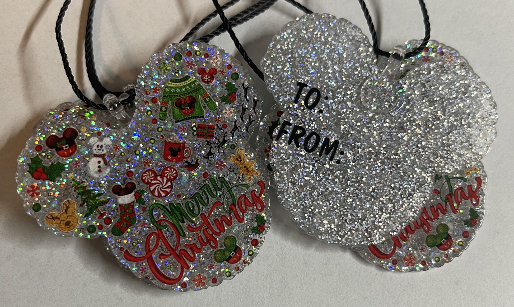 MICKEY HEAD KEEPSAKE GIFT TAG ORNAMENT SET OF 5