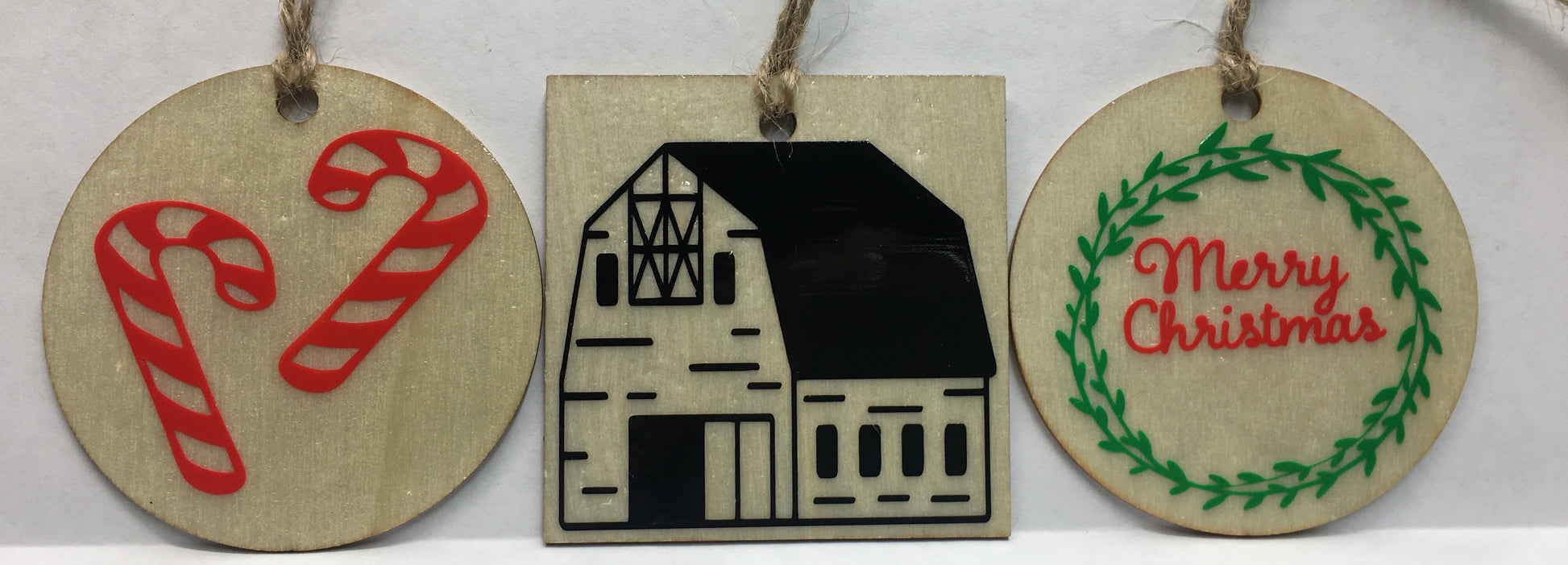 Wooden ornament with glitter and resin sealed vinyl
