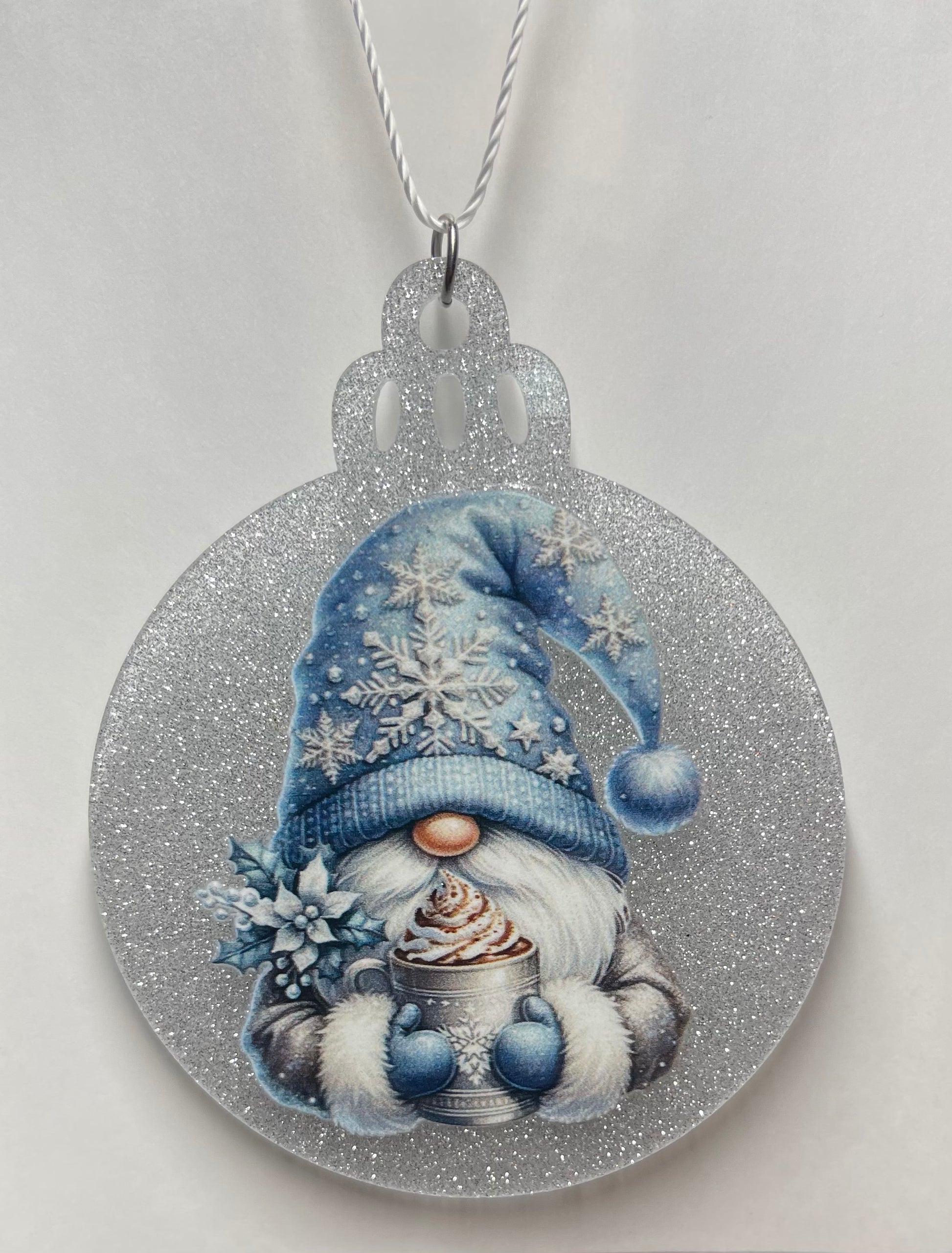 Durable acrylic material, the SILVER CHRISTMAS GNOME ORNAMENT is a festive addition to any holiday decor. Its vibrant color and high-quality construction make it a charming and long-lasting ornament for your Christmas tree or as a fun decoration around the house.