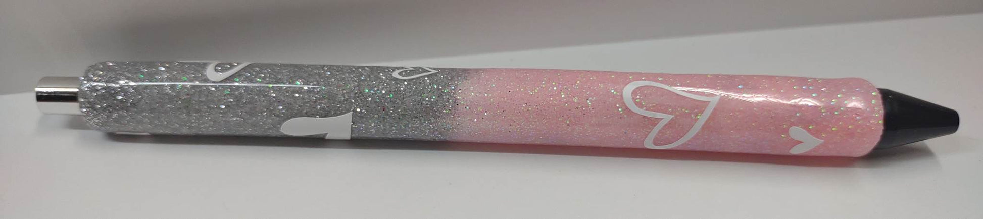 SILVER TO LIGHT PINK GLITTER PEN WITH WHITE HEARTS