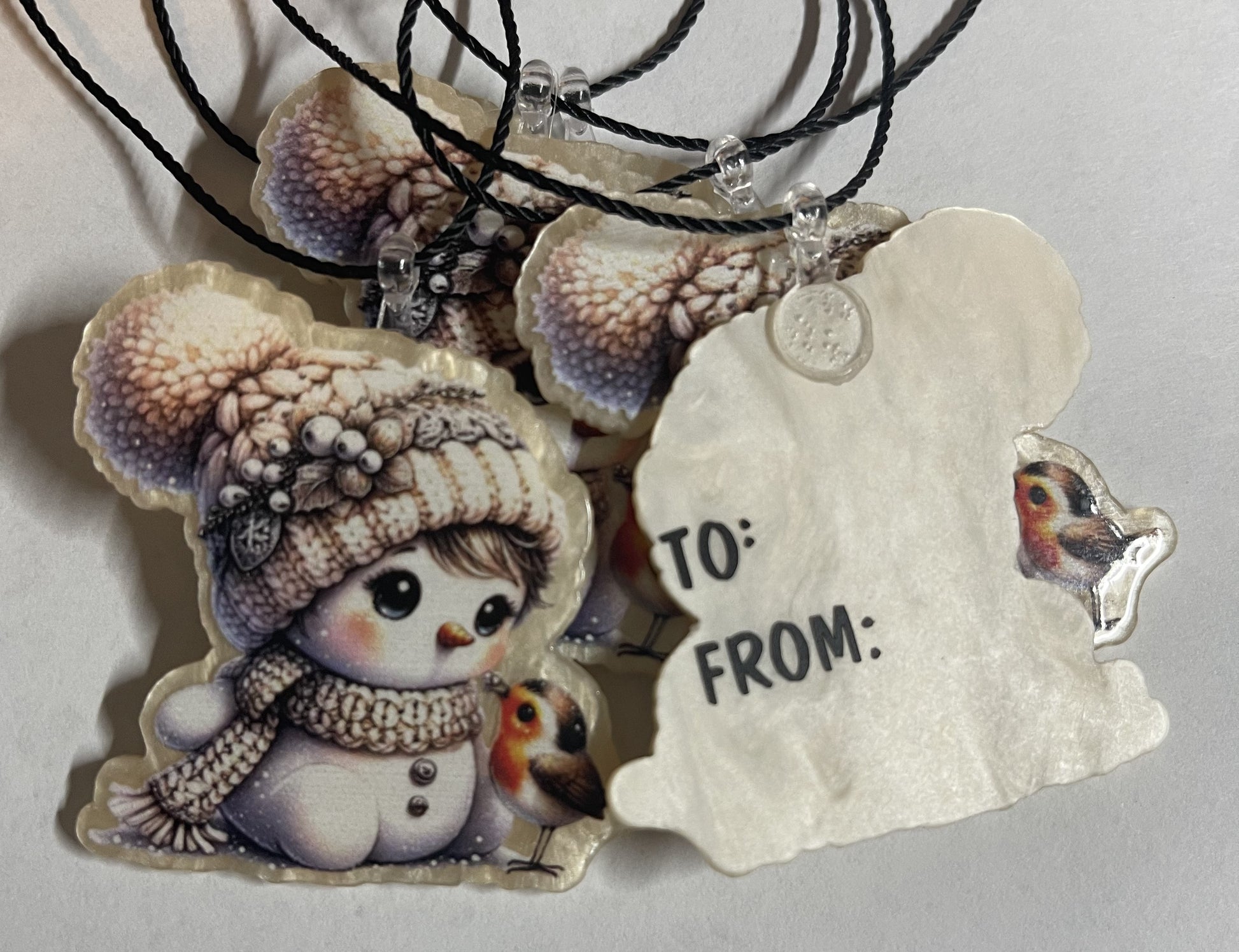SNOWMAN WITH BIRD KEEPSAKE GIFT TAG ORNAMENT SET OF 5