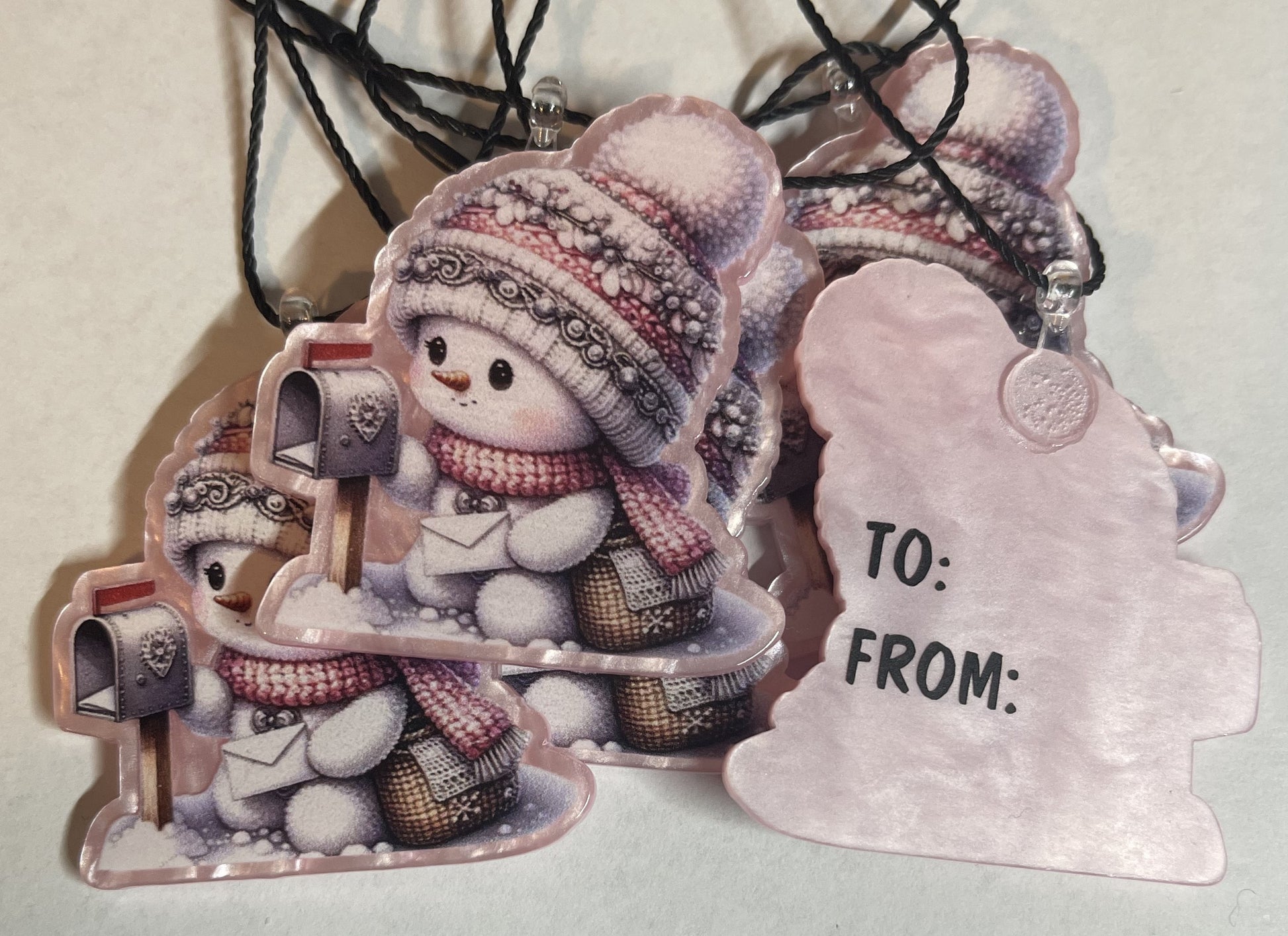 SNOWMAN WITH MAILBOX KEEPSAKE GIFT TAG ORNAMENTS SET OF 5