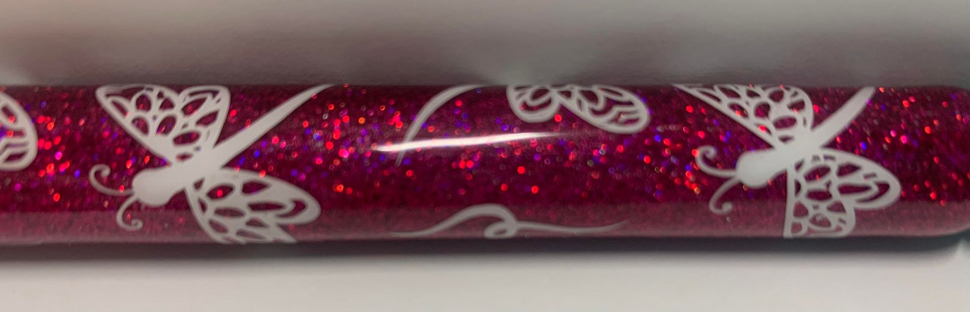 TAHITIAN PINK GLITTER WITH WHITE DRAGONFLIES