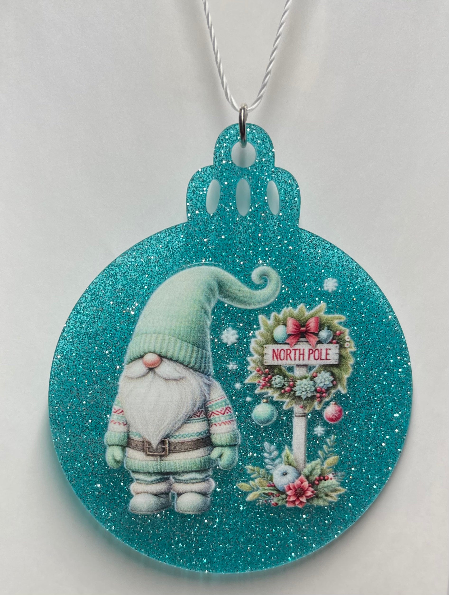 Durable acrylic material, the TEAL CHRISTMAS GNOME ORNAMENT is a festive addition to any holiday decor. Its vibrant color and high-quality construction make it a charming and long-lasting ornament for your Christmas tree or as a fun decoration around the house.