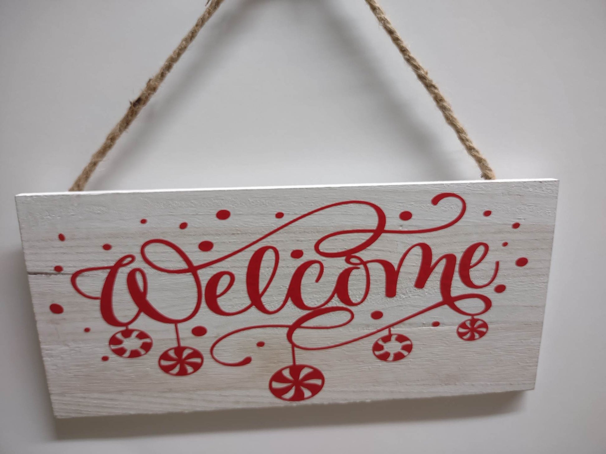 White Peppermint Welcome Sign with Red Vinyl