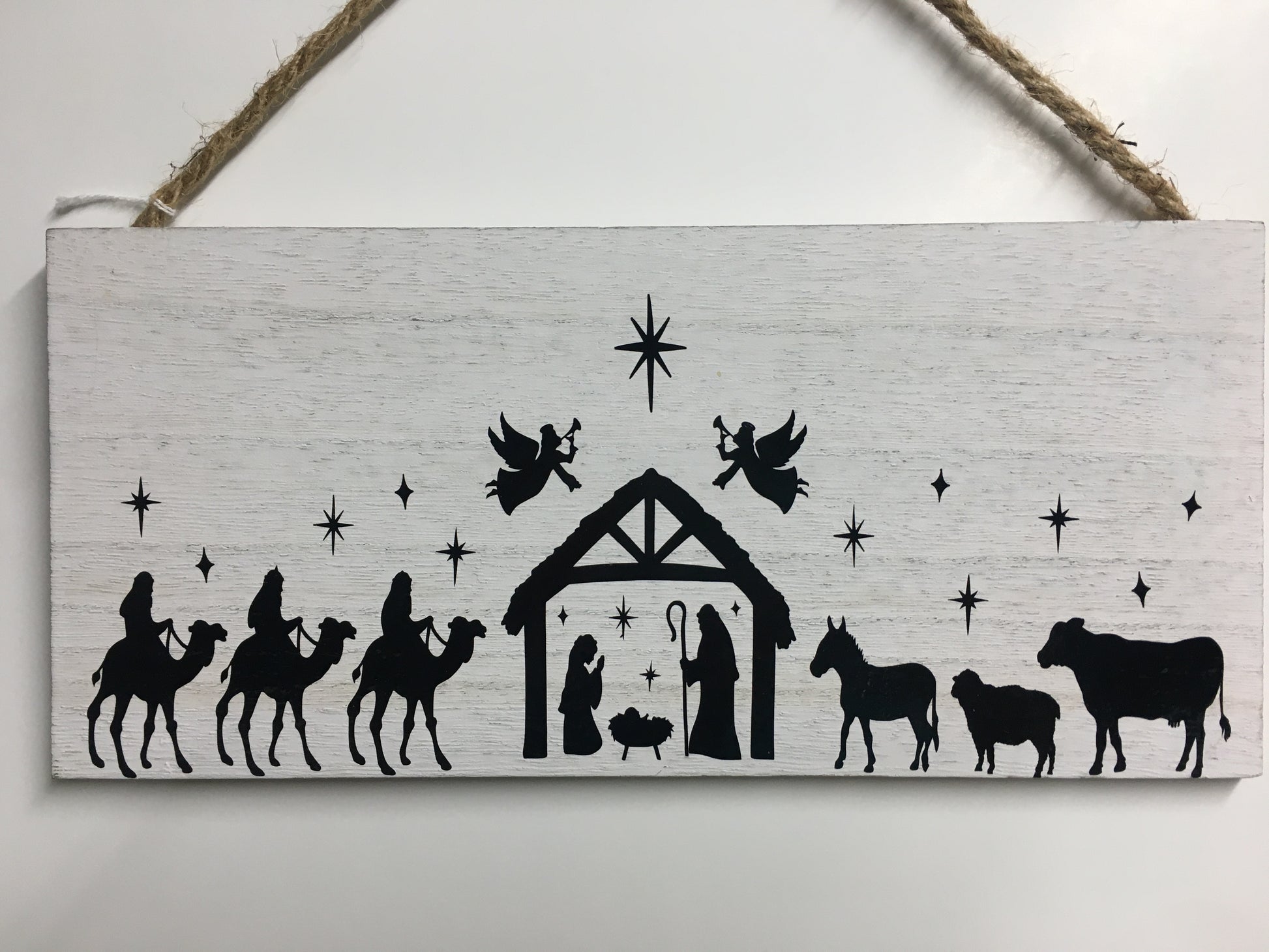 White Wood Nativity with Black Vinyl