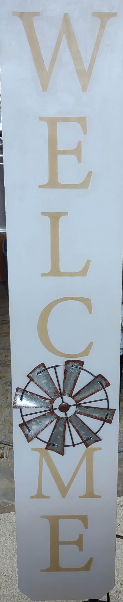 Wooden Welcome Sign with Galvanized Windmill for the "O" 47 in tall by 7 3/4 wide